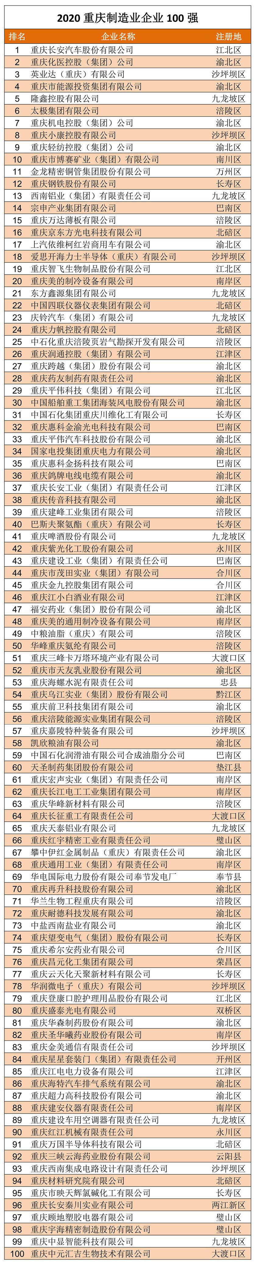 12户渝企跨入2020中国制造业企业500强:化医集团、隆鑫控股、太极集团、机电集团、小康控股、轻纺集团、博赛矿业、金龙铜管、重钢股份、宗申产业、万达薄板和智飞生物