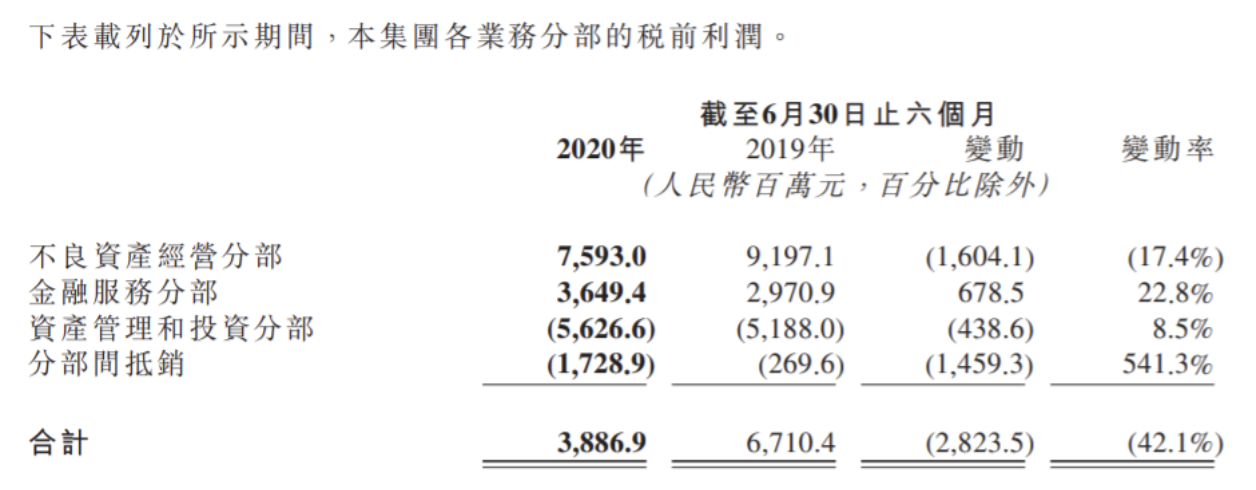 财报称,上半年中国华融核心业务、不良资产主业保持平稳,不良债权资产收入167.74亿元,同比增长7.4%;牌照类金融子公司平稳增长,金融服务分部税前利润36.49亿元,同比增长22.8%。