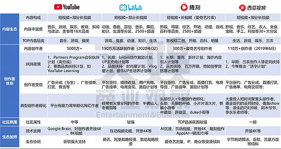 总体上来说,三家的内容生态虽然较YouTube还有差距,但是类别都比较丰富,且都有了自己平台的代表品类,他们正在围绕这些优势品类向外延伸扩圈。