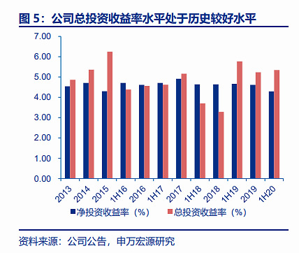 值得一提的是,据申万宏源证券研究所研报显示,尽管受疫情影响,公司投资收益略有下降,但总投资收益率仍处于历史较好水平。