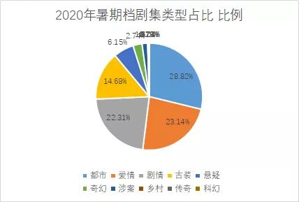 从题材与类型来看,2020年暑期档依旧是一个百花齐放的档期。艺恩数据显示,今年剧集市场中都市项目依旧占据大头,占比为28.82%,其次则是爱情、剧情、古装、悬疑、奇幻等依次排开。若将其进一步排列组合,可以发现,市场中占据大头的题材依旧是都市、古装和悬疑题材。