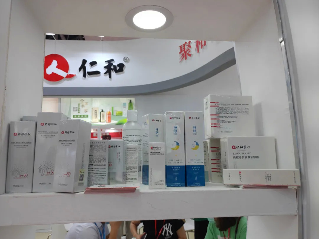 记者在美博会现场还看到,同为生物制药行业翘楚的仁和集团,也带来了多种美妆产品参展集团用4个场馆展现出旗下大健康、药妆化妆品、个人护理、日用品四大板块业务,其中化妆品业务首次参展,其中一款眼膜引来了众多商家咨询洽谈。