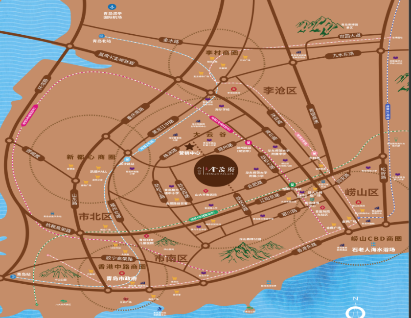 从地理位置上看,大云谷金茂府所在的位置主要位于西韩,这里是李沧、市北与崂山区的交界;但如果从价格上看,项目3.7-3.8万元/平的定价显然是在尽量将自己的定位向南侧浮山后靠拢。