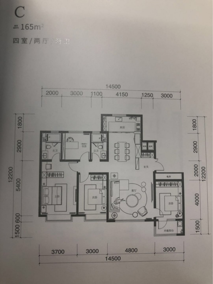 以165平三居户型为例,从布局上看是经典的元宝户型,全南向卧室,户型方正,空间利用率相对较高,仅玄关正对的带状走廊空间略有浪费;客厅4.8米的大面宽给户型带来相当敞阔的视觉观感;卧室与客厅都南北通透,但也都穿越了厨房和卫生间等功能区,这使通透性略打折扣。