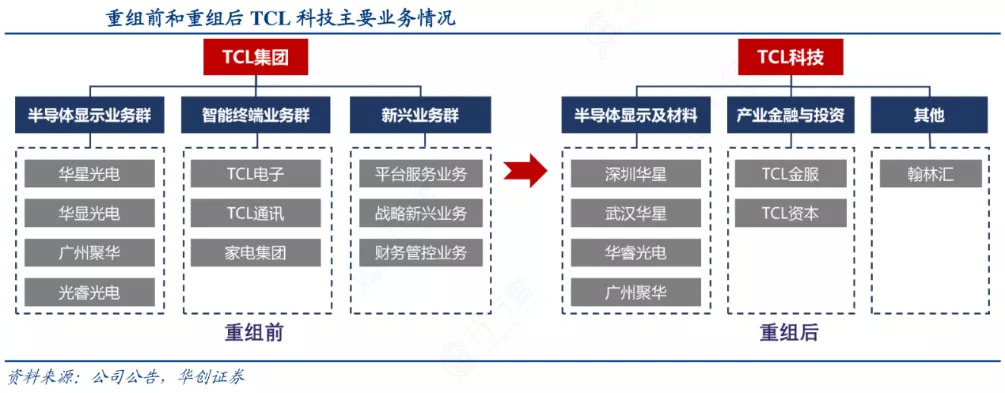 重组完成之后,TCL集团所拥有的资产将只剩下华星光电,也就是TCL集团的半导体面板业务。