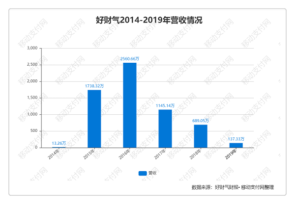 好财气是一家聚合支付服务商,2016年10月挂牌新三板,彼时年营收2560万,当时员工37人,可谓是巅峰状态。然而截止至今年上半年,员工仅余8人,分别是1个财务、2个管理、2个业务、3个运营。