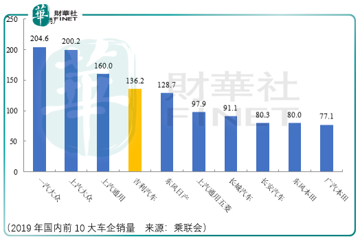 基于这样的基础,吉利汽车才得以成为目前国产自主品牌的龙头企业。尽管在2016-2020年间,我国乘用车行业的集中度进一步提升:前5大企业和前10大企业市场占有率分别由 33.6%和54.88%提升至39.67%和62.65%。但需要注意的是,截至2019年,吉利旗下汽车总销量为136.2万辆,距行业第一名仅剩68.4万辆。