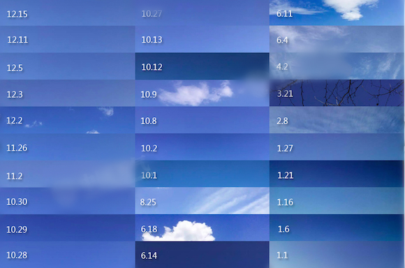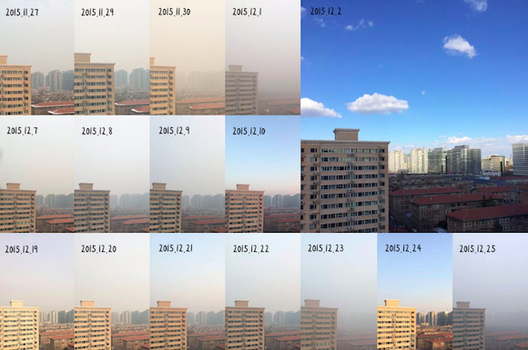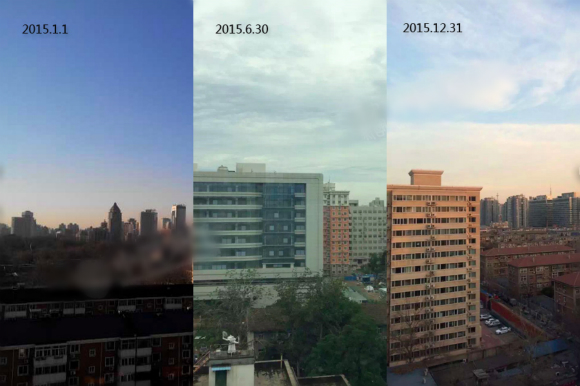 站在2015的末尾,回想过去一年,北京经历了雾霾围城的无奈,也有“阅兵蓝”的畅快。这里我们借用热心网友藏洪的视角,用实景照片拼接的方式集中呈现这一年来大部分时候北京的天空状况。