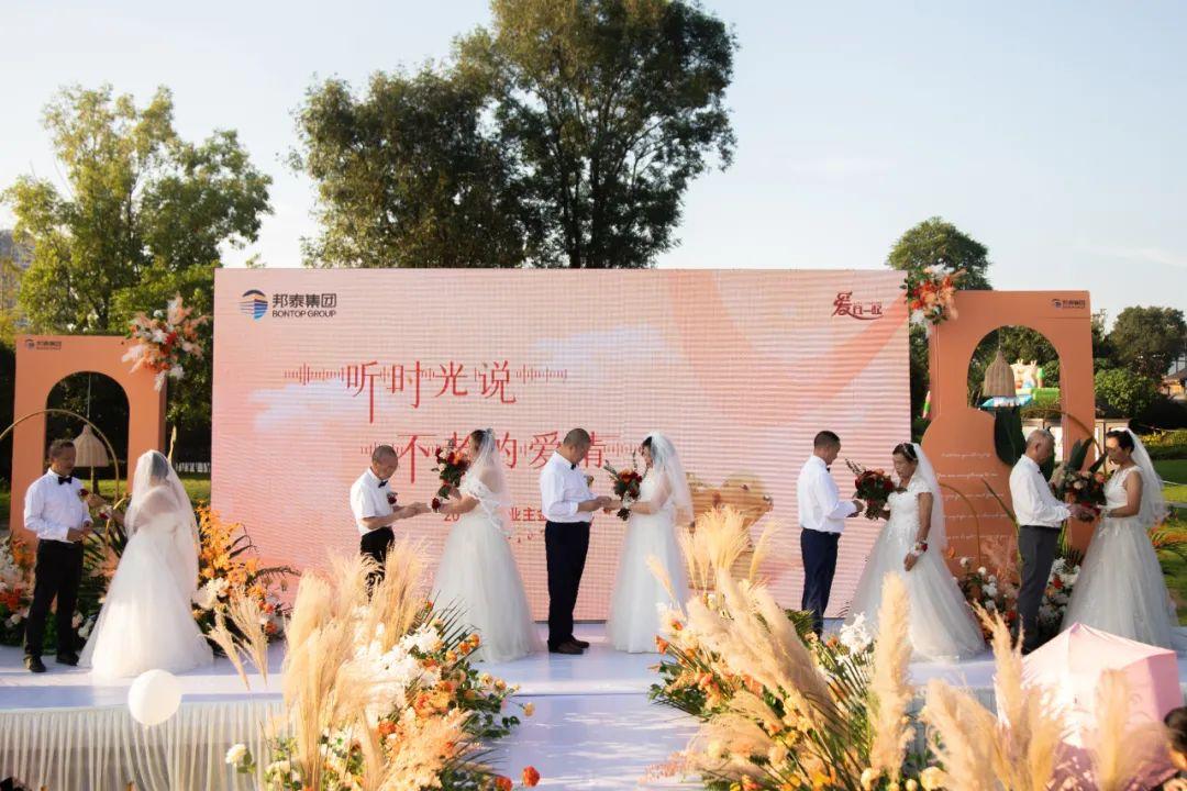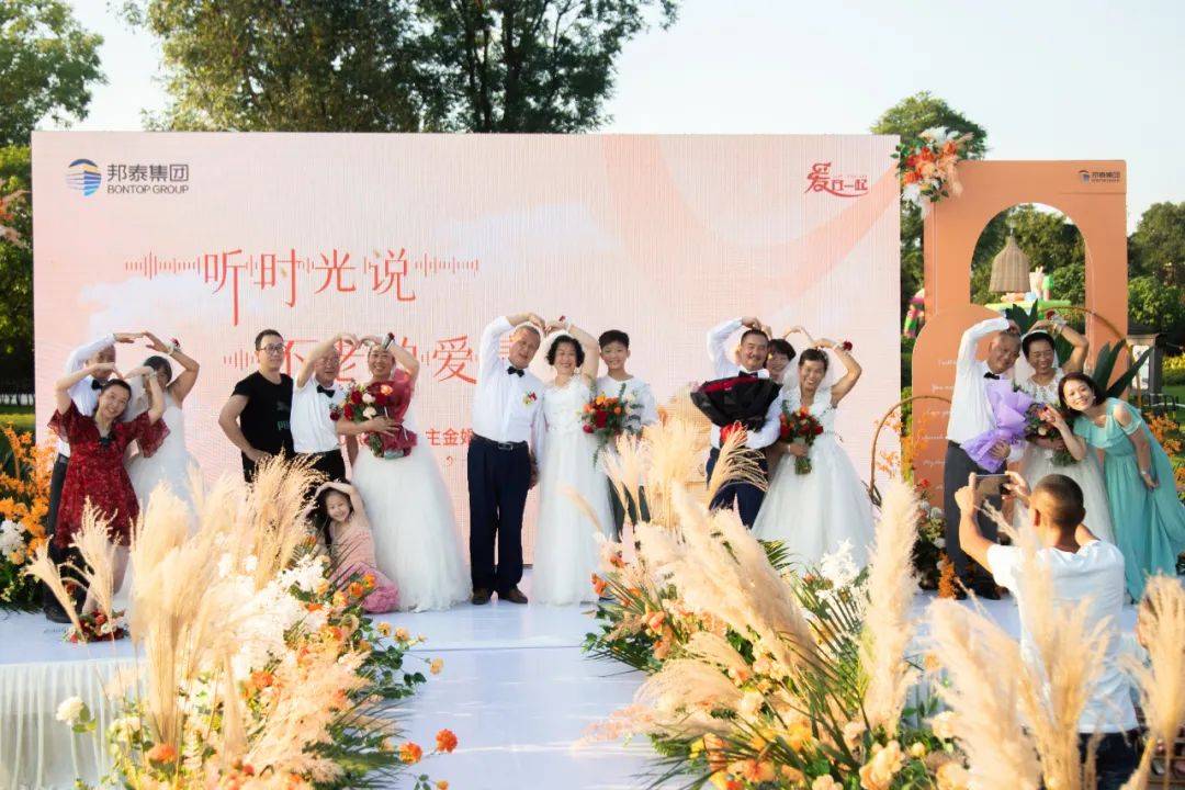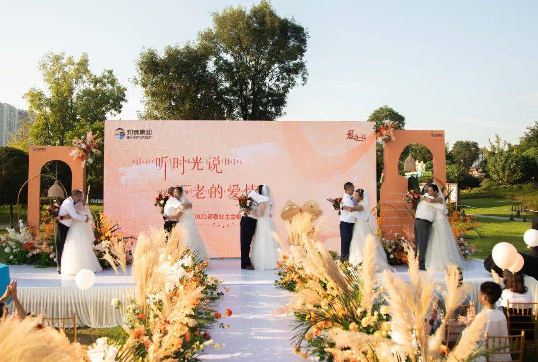 2020年9月6日,邦泰【爱在一起】关怀季之"听时光说 不老的爱情"业主金婚典礼,于乐山邦泰·嘉州长卷·天街温情举行。通过网络投票胜出的五对老年业主,身着婚纱、礼服,在子女亲朋、邦泰乐山公司领导及员工、邦泰品牌部员工的见证下,携手步入婚礼现场。在这场意义非凡,温馨又不失浪漫的婚礼里,他们重忆芳华岁月里的动人爱情,于岷江畔圆数十载婚礼梦。