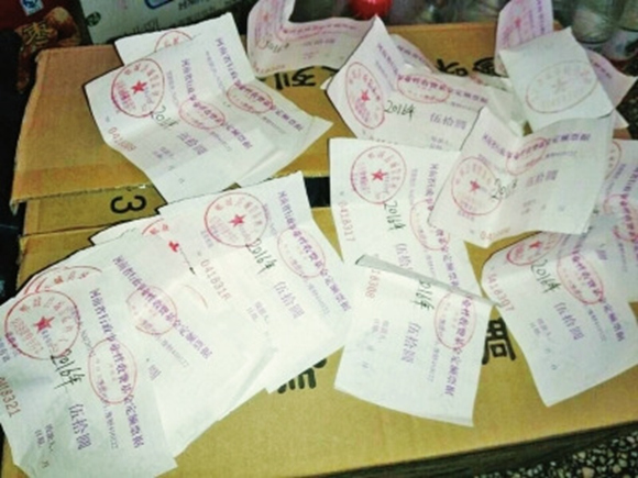(图为郸城县的三轮车车主收到的收据,来源:网络)