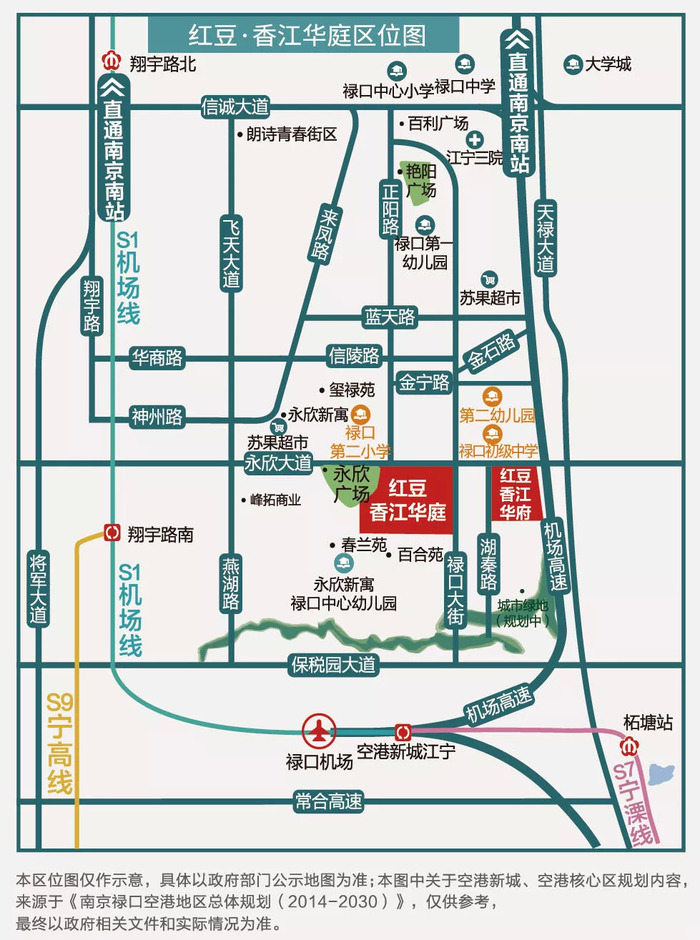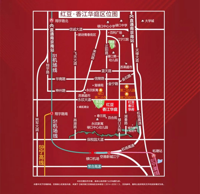 红豆香江华庭位于江宁禄口空港新城,总占地约3.1万方,总建面约6.5万方。