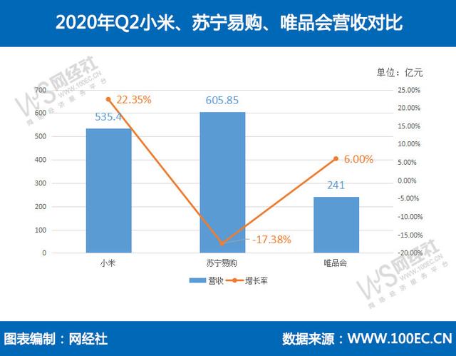 营收:小米稳定增长趋势良好 唯品会增速回正