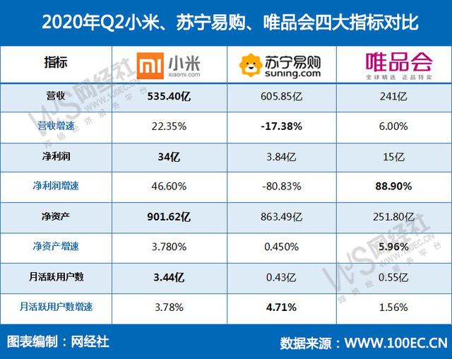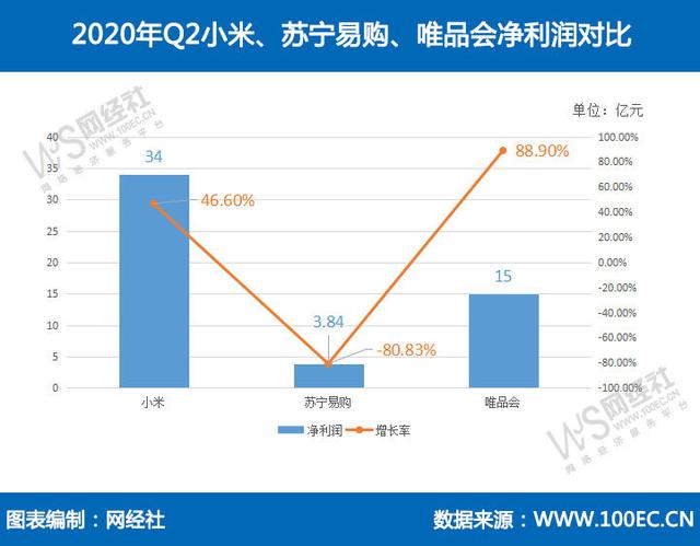 净利润:小米 唯品会增速明显 苏宁易购同比下滑