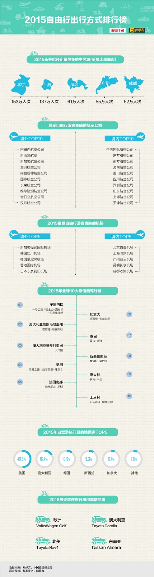 不过,北京毕竟是北京,在这个“2015自由行出行方式排行榜”中,北京便成为了“最土豪的城市”。