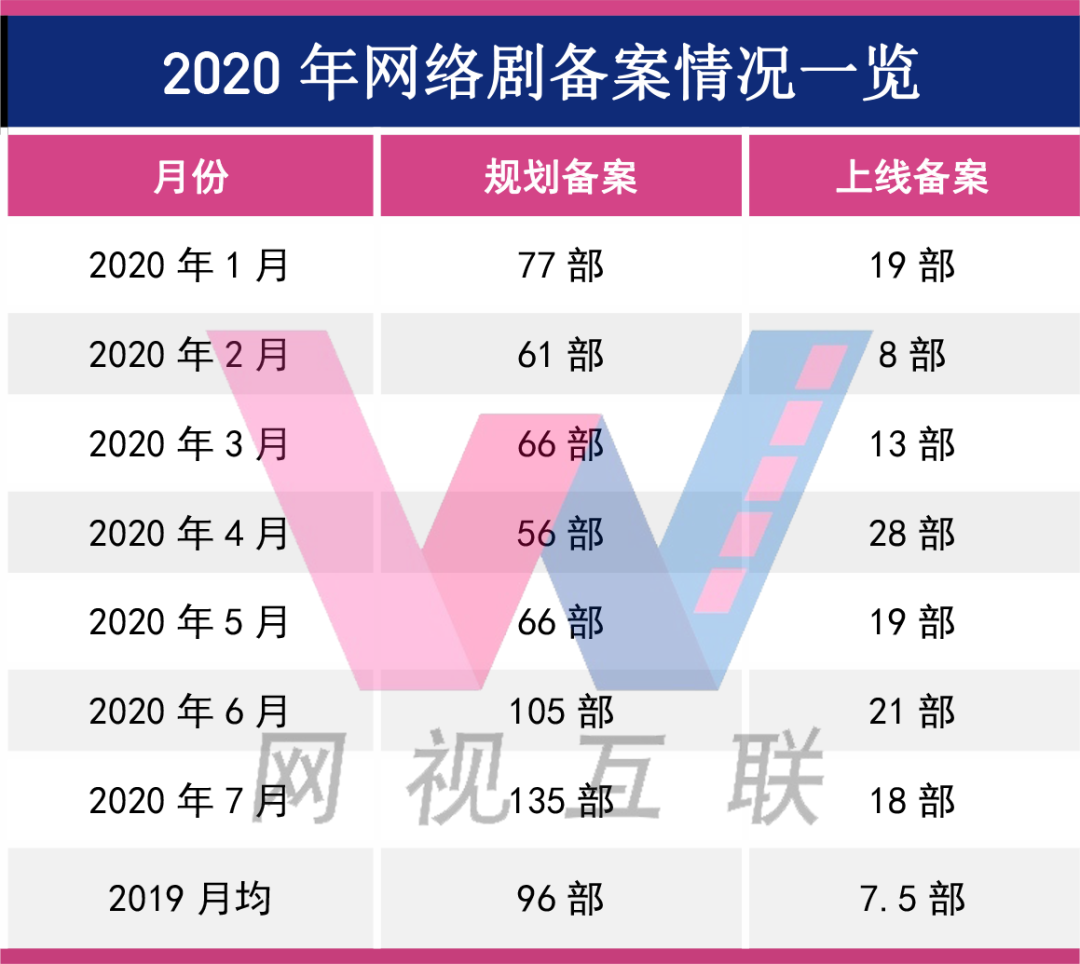 而2020年1-7月取得上线备案号的网剧共126部,平均每月也才18部。也就是说2020年,过审网剧数量不足一直在持续。