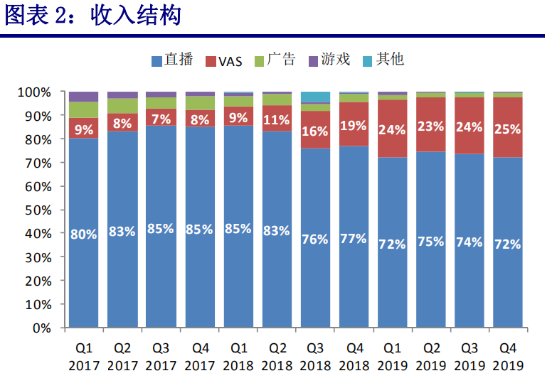 从财报中我们不难看到,陌陌的营收分别来自以下几个业务板块:直播服务、增值业务(会员费等)、广告业务、游戏业务。
