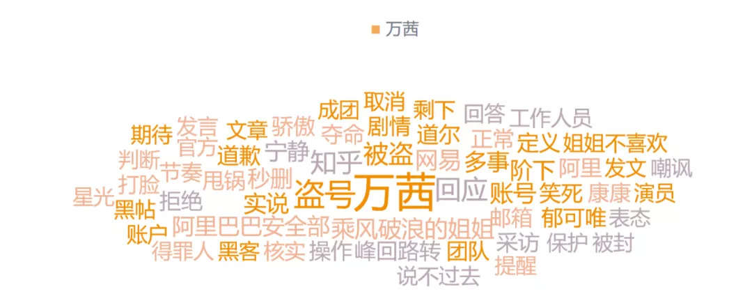 与此同时,万茜也由此受到“人淡如菊人设崩塌”、“营销翻车”等负面评价。在微热点显示的万茜相关词云中,“打脸”“说不过去”、“笑死”、“嘲讽”等言论也反映了万茜的好感度遭受打击。