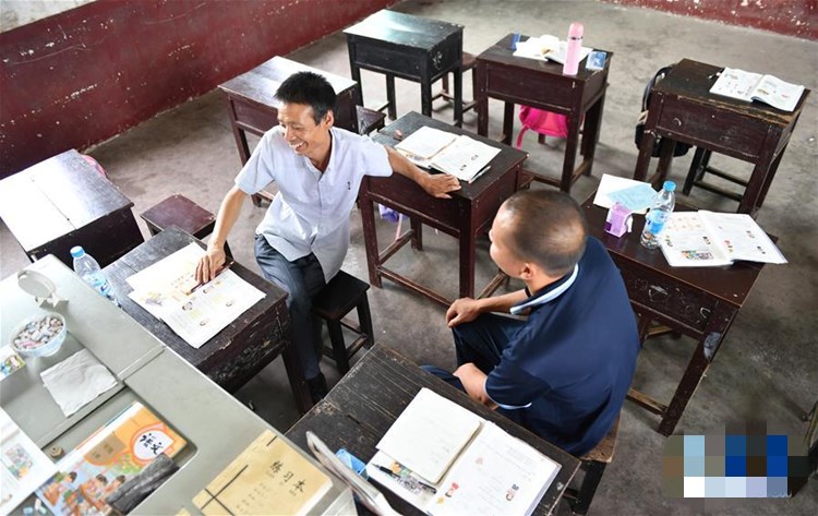 湖南省衡阳市衡东县荷泉小学是一所有52年历史的乡村学校。有着34年乡村教育经验、今年55岁的陈小平在这里一干就是12年。一段时间以来,由于生源减少,荷泉小学只有他一名老师,承担10多名孩子的教学任务。今年9月3日,荷泉小学终于迎来了一位新老师——苏惊涛。因为父亲也曾从事乡村教育,苏惊涛从小的梦想就是当一名乡村教师。本学期,他主动申请来到荷泉小学,目前承担三年级的语文、数学、英语等教学工作。 一老一新两位老师,撑起了荷泉小学孩子们的读书梦。乡村教育的火种在一代一代传承着。