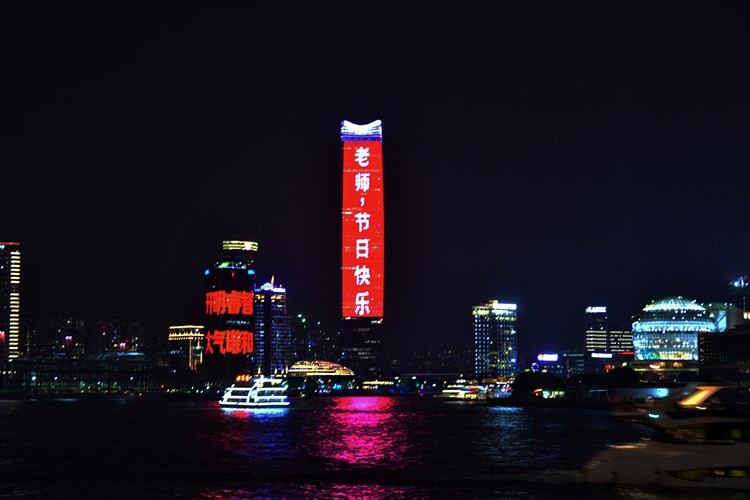 2020年9月9日晚,上海浦西白玉兰广场巨幕LED屏亮灯为教师节送上祝福。
