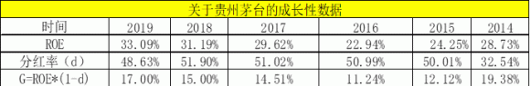 从现实的角度出发,R取GDP的名义增长率为8%左右,当ROE=16%时,如果盈利的一半用来分红,剩余部分就可以实现G=8%,也就意味着股价可以一直被推高,直到这一趋势被打破。贵州茅台就是如此,在过去一直维持超高的ROE水准,分红恰好维持在盈利的50%左右 (或者更低), 这就使得G在过去始终大于必要回报率R的水准,完全符合以上模型中对于股价没有天花板的要求,这就是机构一直持有贵州茅台的理论依据。
