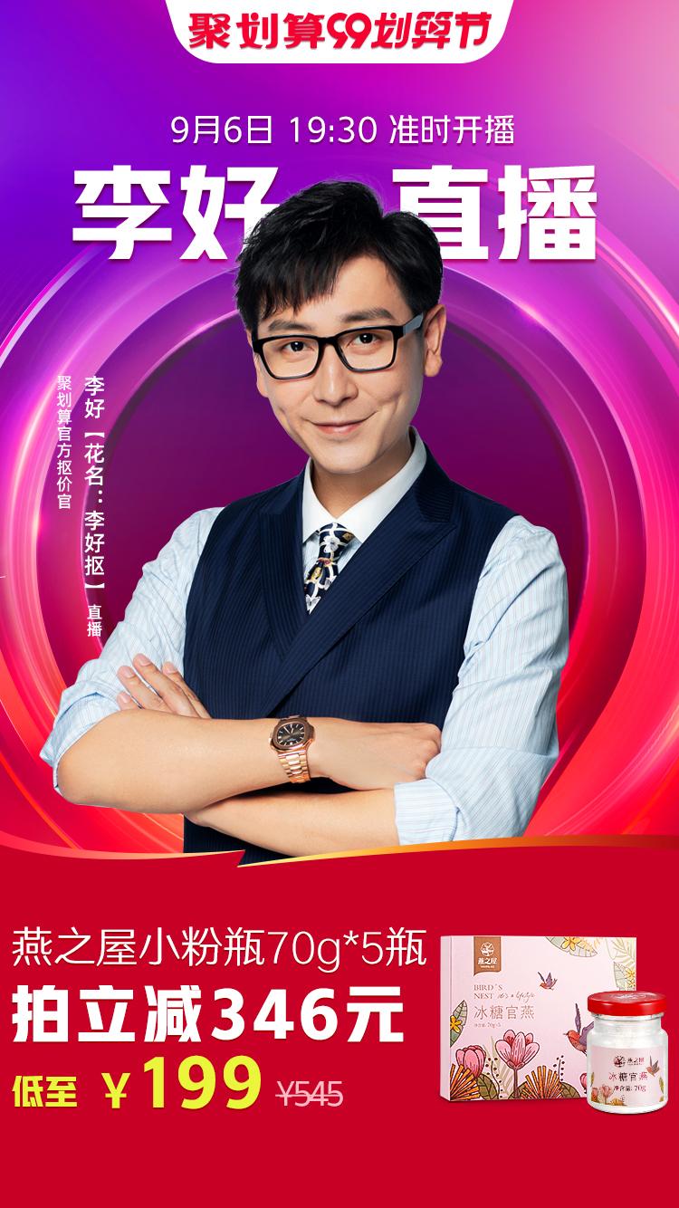 聚划算99划算节如今稳站阿里巴巴三大购物节位置之一。而在今年,聚划算99划算节携百亿流量补贴,再次全面升级,旨在为全民带来更多超值好物,享受狂欢购物party。李好作为聚划算官方抠价官,在当晚直播带货中更是发挥出色的业务能力,所选好货得到了直播间观众的热情回应。“燕窝来了!”,在李好的感叹声中,燕之屋小粉瓶也亮相登场,引得直播间内呼声连连。