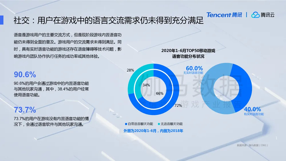 《2020游戏产业趋势报告》显示:语音是游戏用户的主要的交流方式,但是现阶段游戏内置语音功能的仍未得到全面的普及。游戏用户的交流需求未得到满足。游戏企业通过专业的实时语音服务商,解决游戏产品中语音功能的适配,优化用户语音使用场景,是改善游戏用户体验的重要方式。