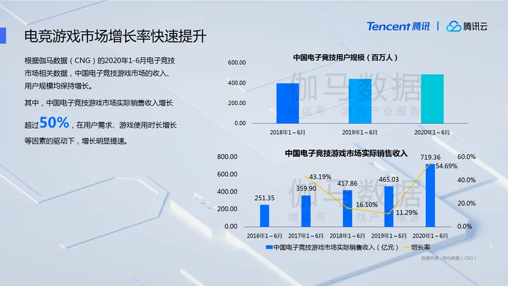 根据伽马数据(CNG)的2020年1-6月电子竞技市场相关数据显示,中国电子竞技游戏市场的收入、用户规模均保持着稳定的增长势头。其中,中国电子竞技游戏市场实际销售收入增长超过50%,电子竞技依旧具备着良好的发展空间。