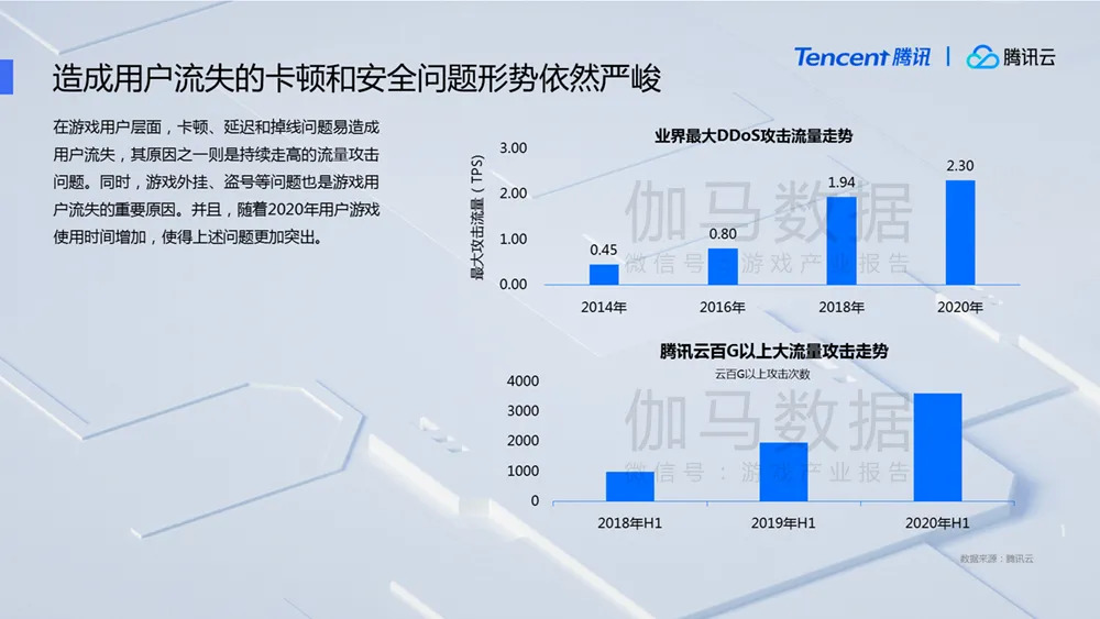 在游戏用户层面,卡顿、延迟和掉线问题易造成用户流失,其原因之一则是持续走高的流量攻击问题。同时,游戏外挂、盗号等问题也是游戏用户流失的重要原因。并且,随着2020年用户游戏使用时间增加,使得上述问题更加突出。