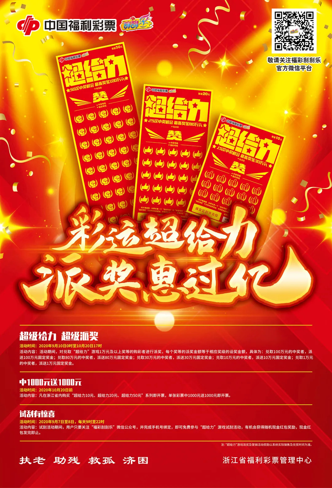 为加快即开票发行销售市场复苏,维护福利彩票发行销售队伍和就业市场的稳定,回馈广大彩民对福利彩票一直以来的关心与支持,中国福利彩票发行管理中心决定于2020年8月20日至10月31日期间,针对全国联销的“超给力”系列即开型彩票游戏开展派奖及营销活动。
