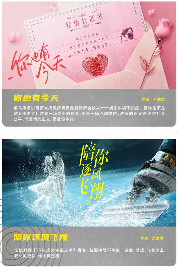 柠萌影业全新推出的片单中,不仅有关注律政行业的《你也有今天》,同时也有聚焦滑冰运动的《陪你逐风飞翔》。