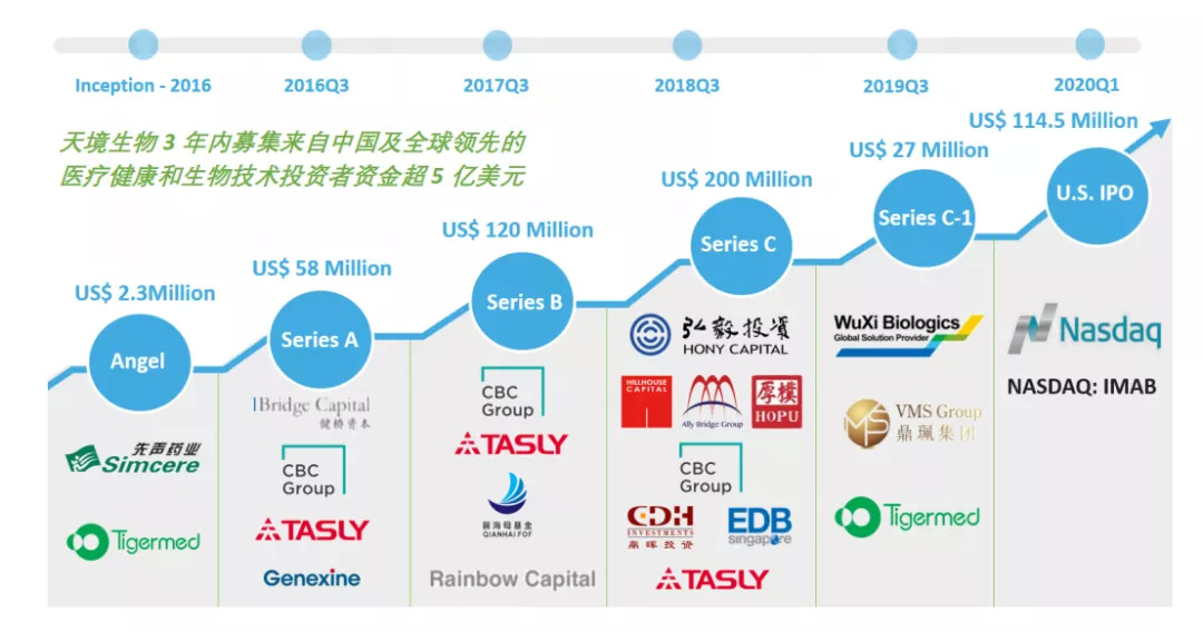2016年10月19日,天境生物完成了1000万美元A轮融资,投资方为康桥资本。此后康桥资本又连续三轮投资,成为天境生物最大投资人之一。