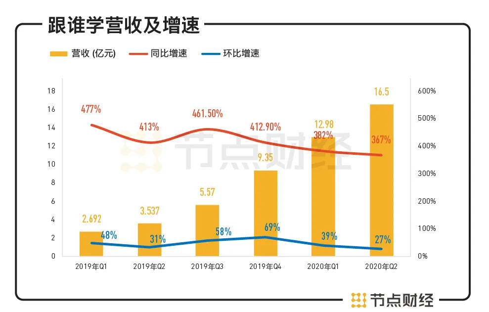 跟谁学上市之后,从其公布的财报来看,收入始终保持高速增长。
