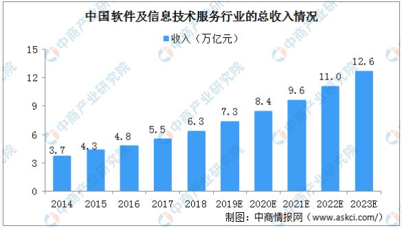 这一背景下,赛道依然处于做大蛋糕的阶段。数据显示,中国软件及信息技术服务行业市场规模(以收入计)从2014年的3.7万亿元增至2018年的6.3万亿元,同期年复合增长率达14.2%。预计在2023年达到12.6万亿元,自2018年起的年复合增长率为14.9%。这一行业规模下,东软教育也将被赋予更多的想象力。