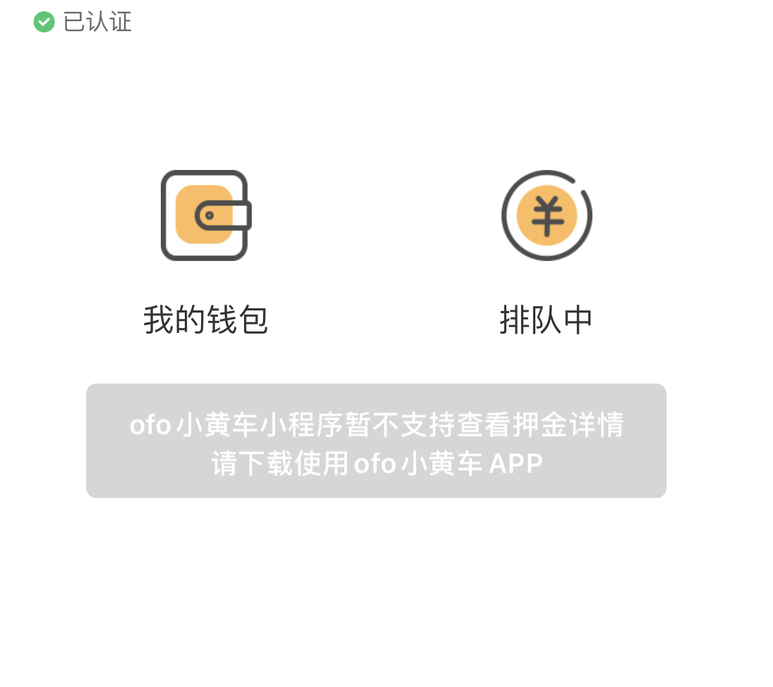 实际上,ofo的官方订阅号和小程序目前仍然在运营中,但在“ofo小黄车”小程序内,用户只能查看自己的账户余额,无法查看退还押金的进度,提示称需要下载ofo APP。