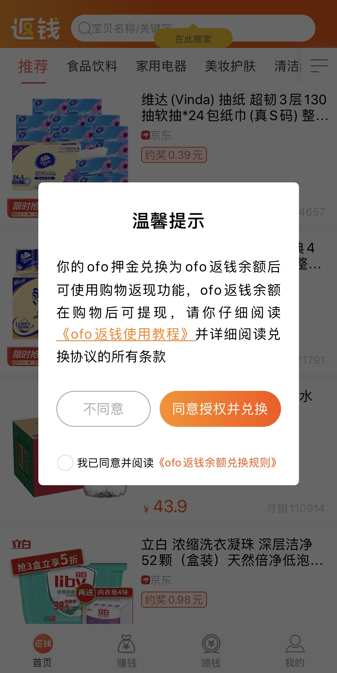 同时,在今年的3月,公众号“ofo小黄车”发布信息称,新版ofo APP上线了网购省钱功能。界面新闻下载软件发现,现在的ofo小黄车APP已经“换壳”,变成了返利购物APP,在登录之后,该软件提示称“ofo押金兑换为ofo返钱余额后可使用购物返现功能,ofo返钱余额在购物后可提现。”