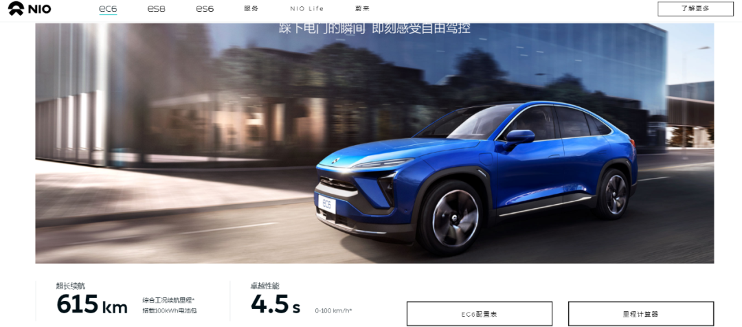 蔚来EC6续航里程达到了615km,图源蔚来汽车官网
