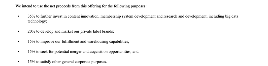 波奇网拟募集1.15亿美元,股票代码为“BQ”,Roth Capital Partners、CMBI和Valuable Capital Limited担任上市承销商。波奇网拟将募集资金的35%用于内容创新、会员系统开发以及包括大数据技术在内的研发;20%用于开发和营销公司的自有品牌;15%用于提高公司的物流和仓储能力;15%用于寻找潜在的并购机会;15%用于满足一般公司用途。