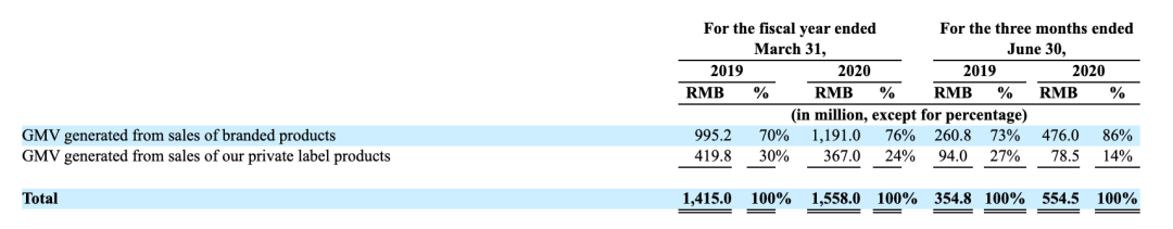2019财年,波奇网销售自有品牌产生的GMV仅占30%,2020财年更是跌至24%,GMV主要还是来自于代销其他品牌产品。