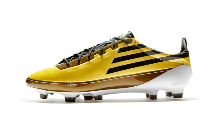 耐克为C罗推出了这么多款黄金战靴,阿迪达斯自然也不会落后,早在梅西于2011年赢得自己的第三座金球奖之后,“三道杠”就为梅西推出过一款金色配色的adizero2战靴。这款战靴和耐克推出的几款黄金战靴相比,高调程度有所下降,似乎仅仅是将金色用在了球鞋颜色的喷涂上面而没有上述几款球鞋的奢华感,不过这也与梅西低调内敛的性格相符合。