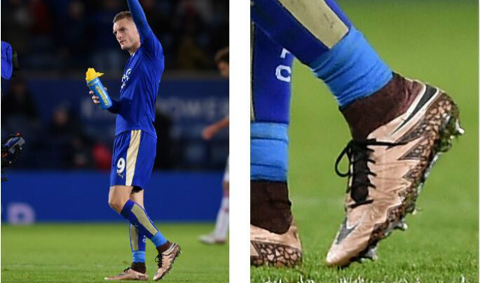除了梅西和C罗两名天之骄子外,草根球员也曾经脚踏过黄金球鞋征战赛场。杰米·瓦尔迪,这名四年前还在英格兰业余联赛效力的球员在本赛季脱颖而出,目前他以15个进球的成绩并列英超射手榜第一,另外,他还以11场连续进球的成绩打破了曼联传奇射手范尼创下的连续10场进球的记录。值得一提的是,他正是在对阵曼联的时候打破了范尼的进球纪录。在那场比赛中,瓦尔迪穿着耐克为他特制的金色毒蜂球鞋完成了对前辈的超越,这也为他的记录增添了不少的“含金量”。
