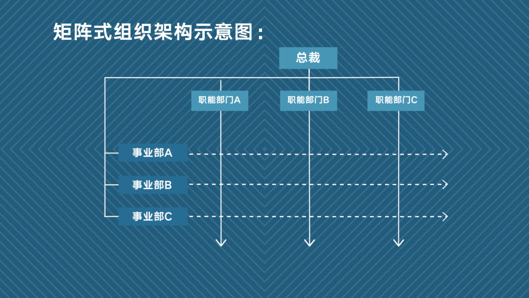 面对这种情况,组织结构又该如何调整呢?我们可以从N到N+1,也就是矩阵式结构。