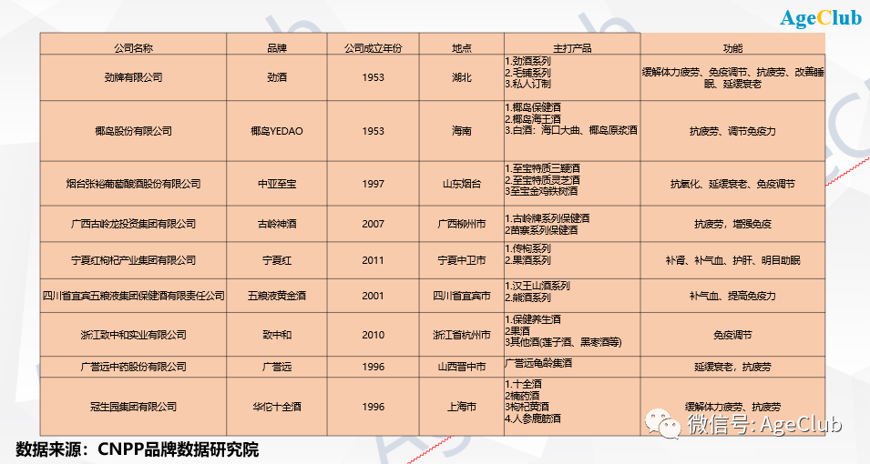 根据CNPP品牌大数据研究院,目前市面上比较有影响力的保健酒品牌有76个,排名前10的公司主要有劲牌、椰岛、致中和等专业保健酒公司,以及部分白酒、葡萄酒甚至中药企业,如五粮液、张裕、广誉远等。