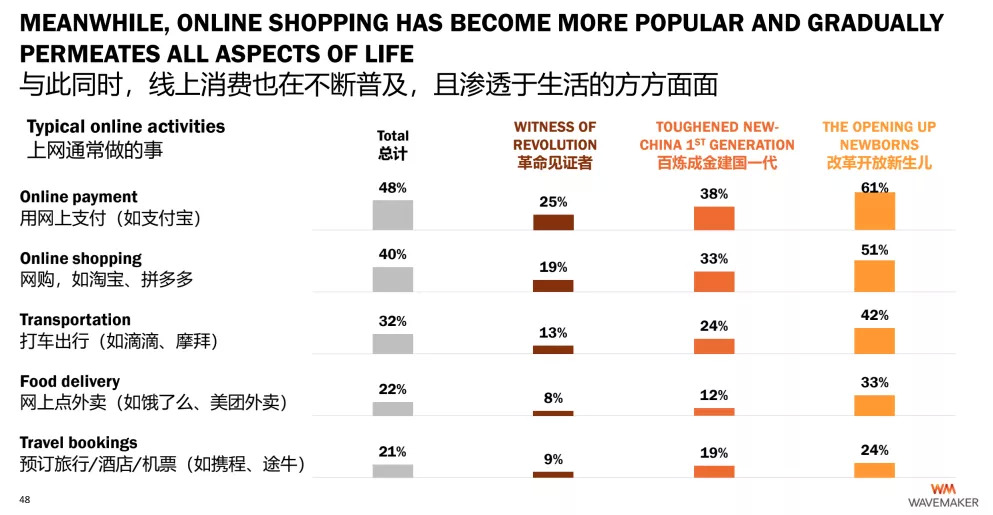改革开放新生儿是经济发展的最直接受益者,积累了一定财富;同时又因经历了“大破大立”时期,受到海外文化的影响,更呈现出“自主多元、开放开创”等现代意识。这个群体紧跟时代潮流,智能手机普及率较高,会刷抖音、微博等社交软件,也会使用包括电商、外卖等各种线上工具。