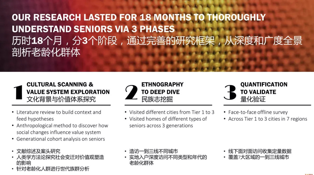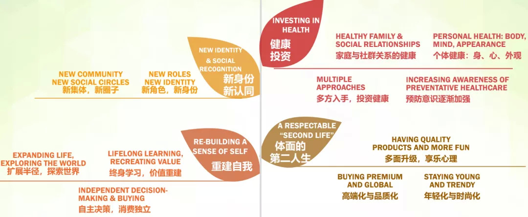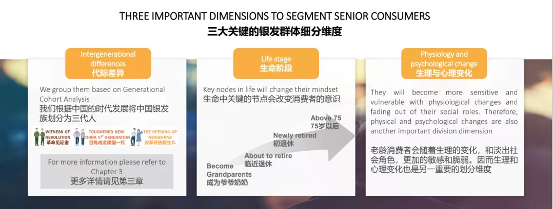 除时代与社会文化影响之外,蔚迈还提出,生命阶段进程、生理与心理状态的变化也是把握细分老年人群特征与需求的两个重要抓手。
