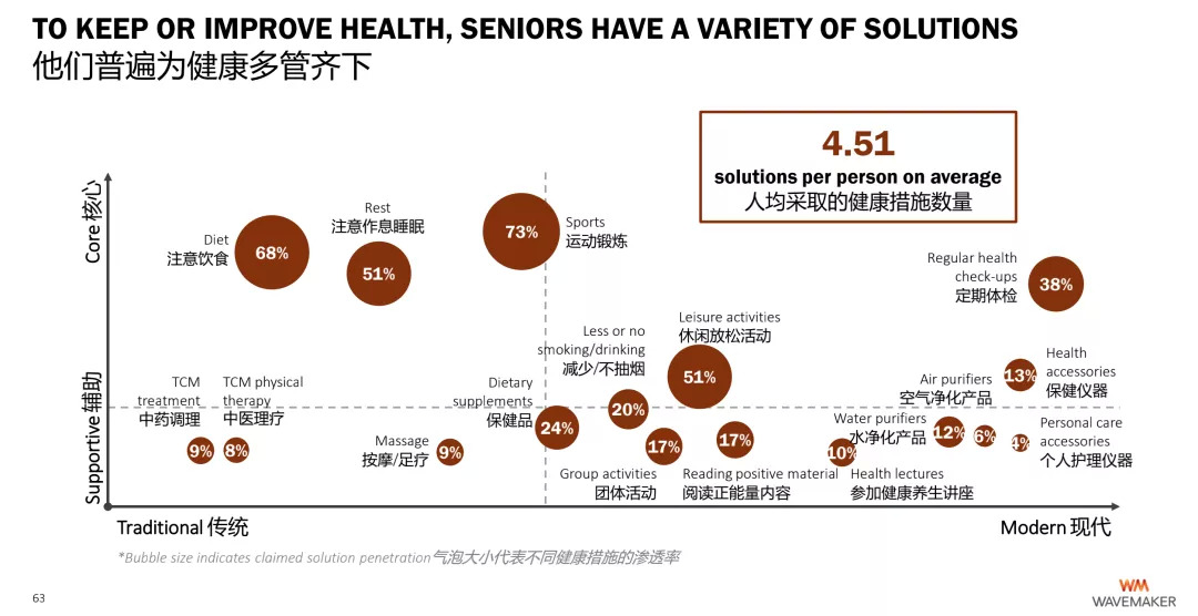 总结来看,健康已经不是一个独立的概念,而是与时尚美容、文化娱乐、学习与价值创造等其他需求紧密融合。蔚迈也将银发健康产业多样化、以及与其他产业的融合列为一大趋势。