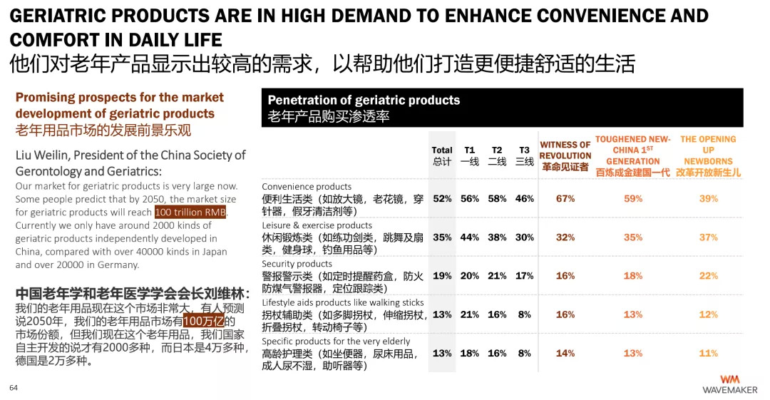 因此,出生于1964-1970年间的改革开放新生儿群体是蔚迈提示品牌重点关注的银发细分群体。