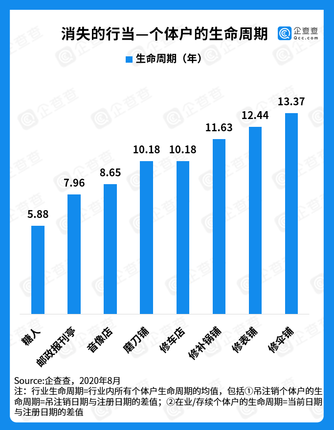 2、 消失的老行当:生命周期平均在10年左右