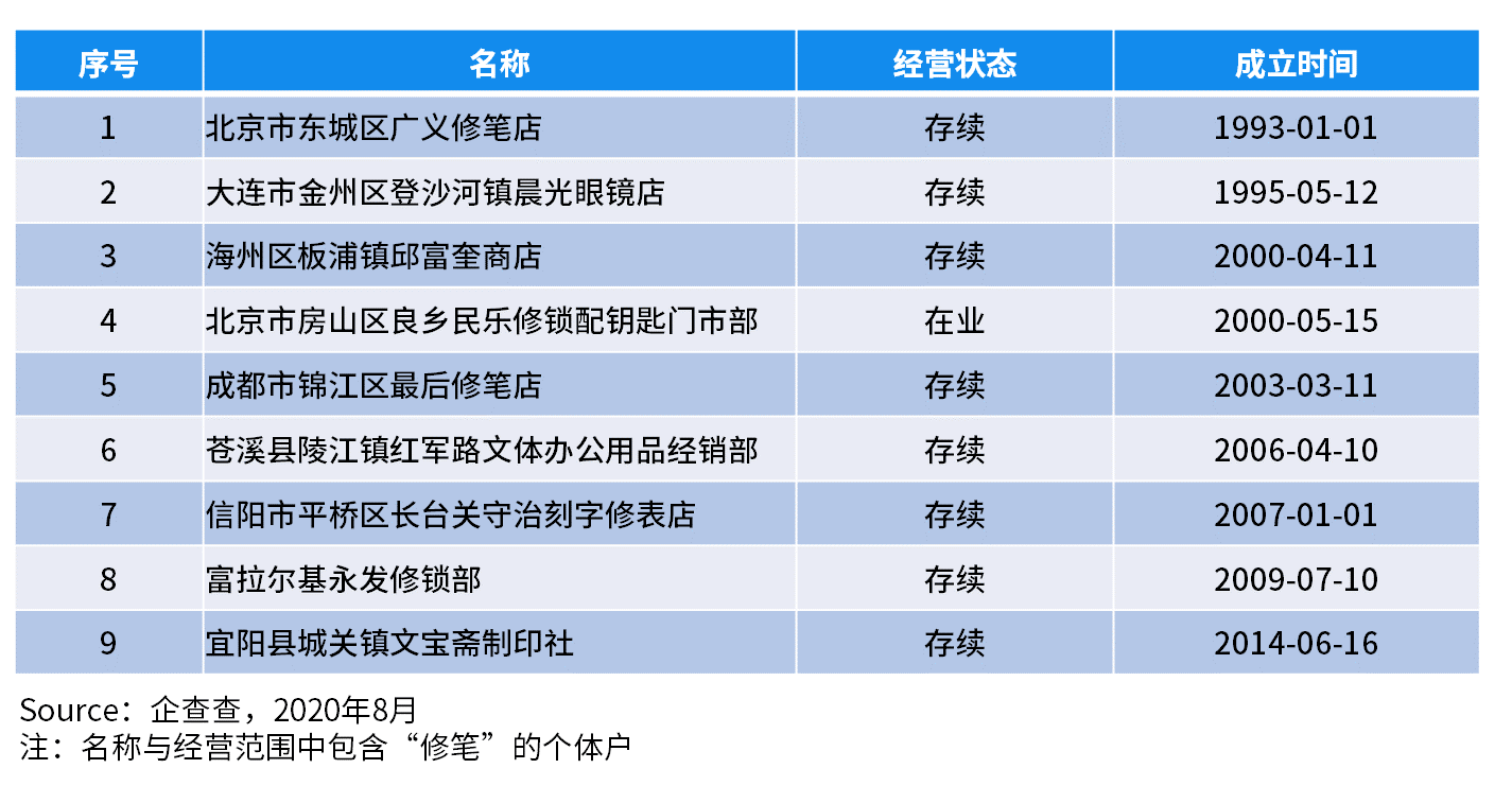钢笔的没落归根结底源于互联网时代的到来,人们读书写字和记录生活的习惯发生改变,无人再有修笔的需求。企查查数据显示,目前我国在业/存续的修笔相关店铺不超过10家。