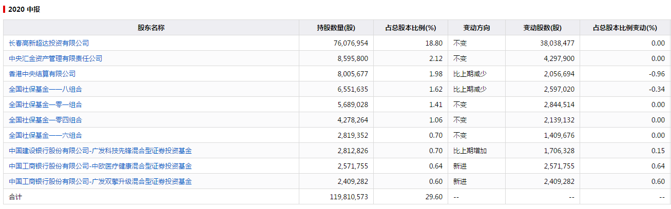从2020年上半年整体来看,长春高新被公募基金累计买入178.18亿元,获净买入2.84亿元,位列二季度公募基金增持的第五大个股。