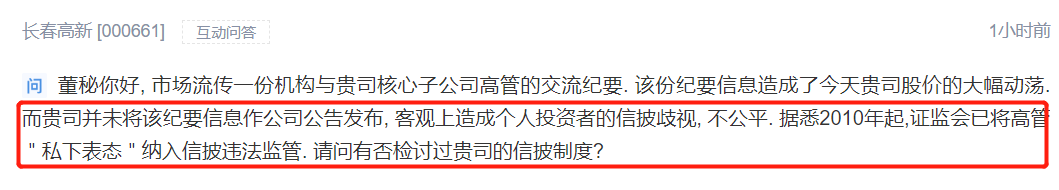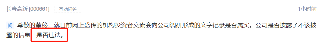 许多长春高新的投资者也通过互动平台质询公司这份交流纪要具体情况。